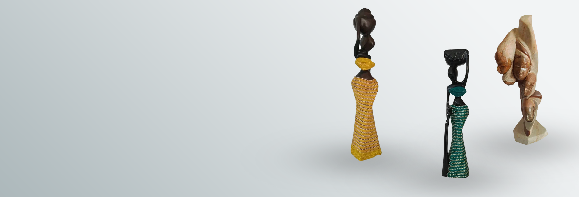 African culture A representation of three sisters coming from the river hand made in ebony tree, dressed with RAPHIA. A pair of...