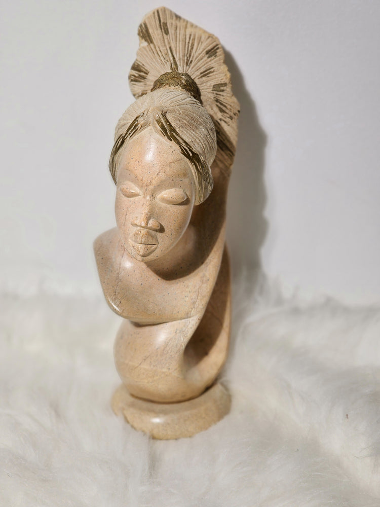 Royalties head Short head in stone of woman representing the cultural fashion of the land
