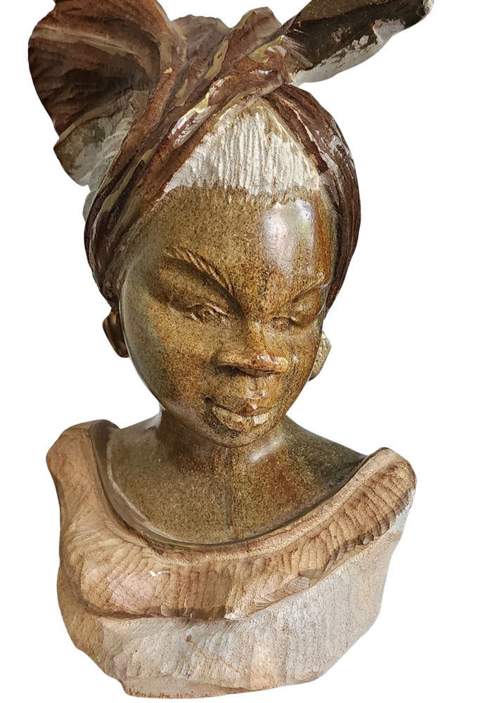 Immortal fashion style Beautiful stone statue of an African woman of value, from her clothes to head's scarf.